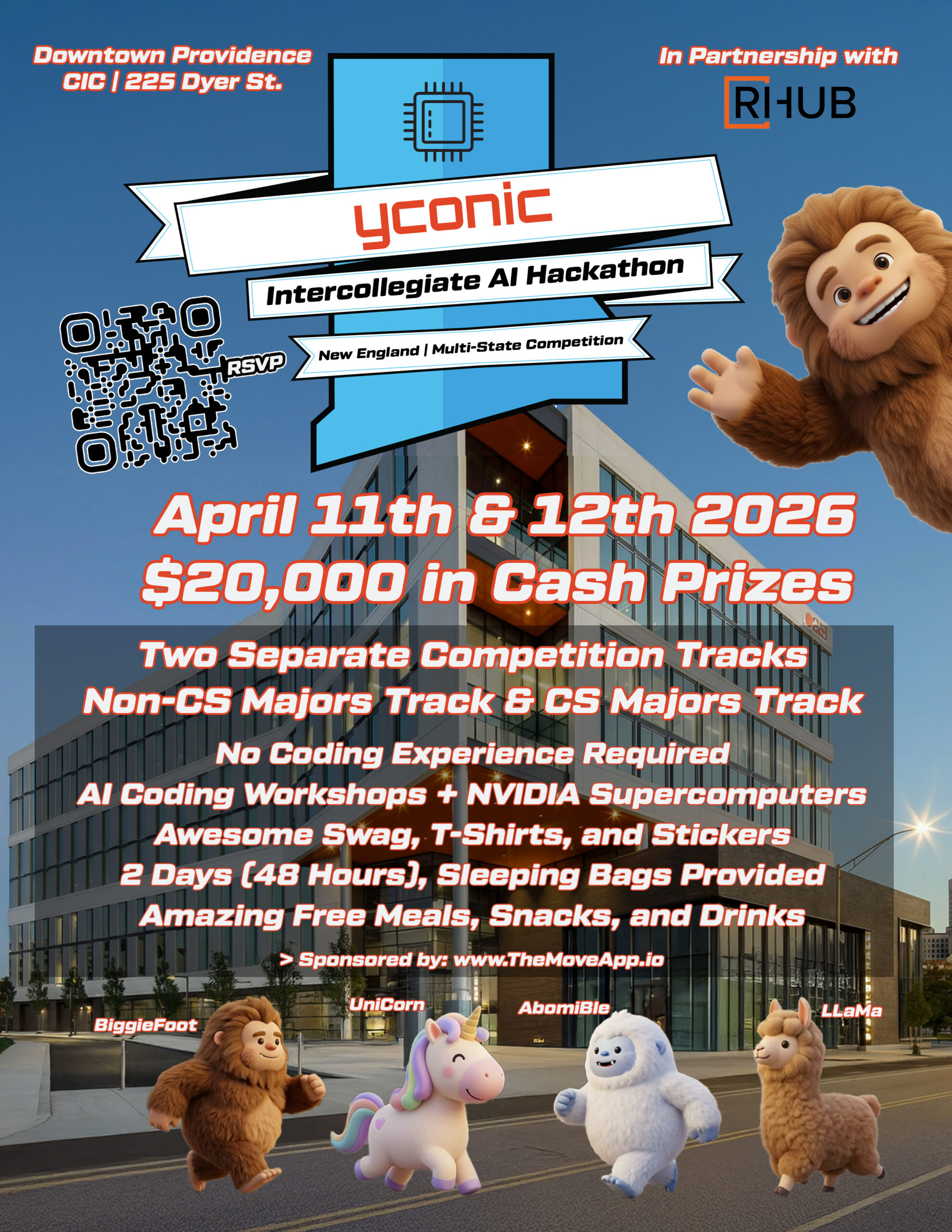In partnership with RIHub, the Yconic All-State Collegiate AI Startup Hackathon is more than a hackathon. It’s a two-day startup accelerator where you’ll use AI to validate ideas, build prototypes, test with users, and create traction that normally takes months.
